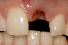 Before: Patient needs a Single Tooth Replacent of one Upper Central Incisor.