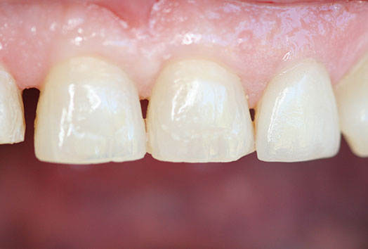 Before: Short irregular and broken incisors with spaces.