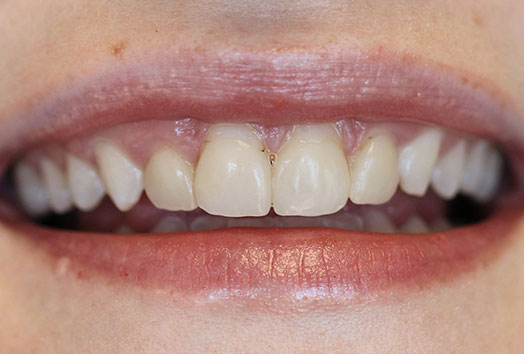 Before: Patient had discolored plastic crowns.