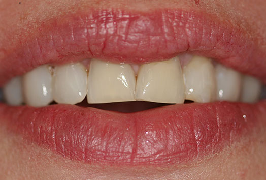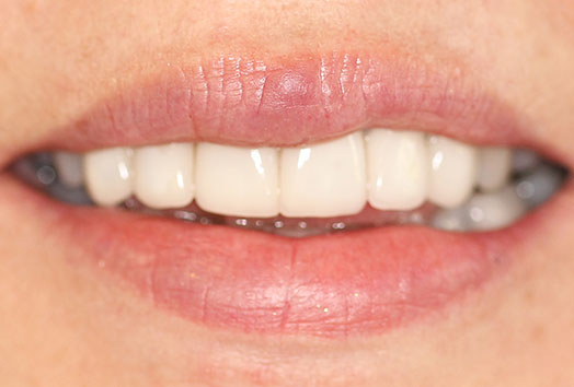 After: Porcelain veneers lengthened the teeth to give a more natural smile.